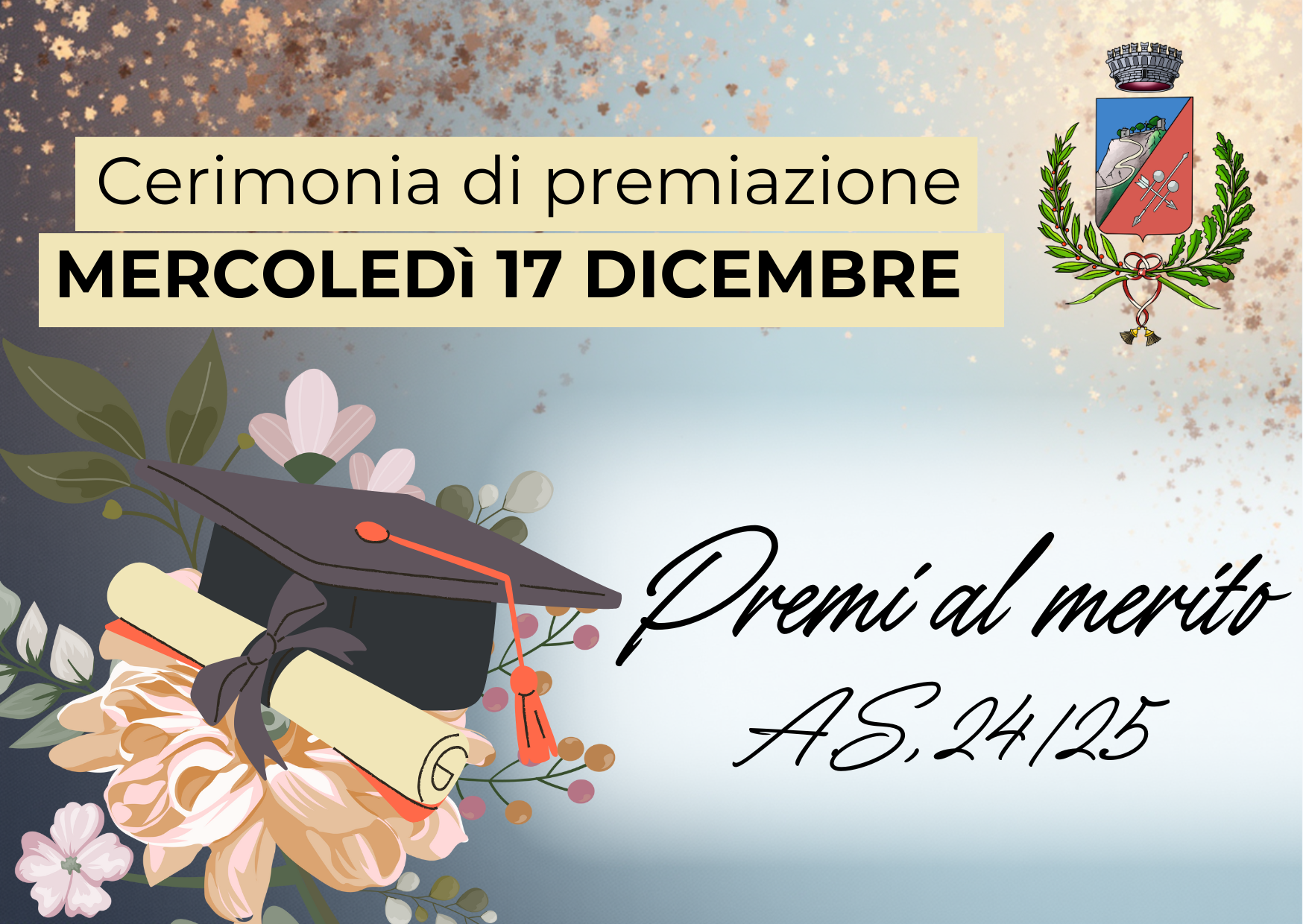 Descrizione Mercoledì 17 Dicembre alle ore 20.30 alla presenza del Consiglio Comunale saranno premiati gli studenti meritevoli per l'A.S. 24/25